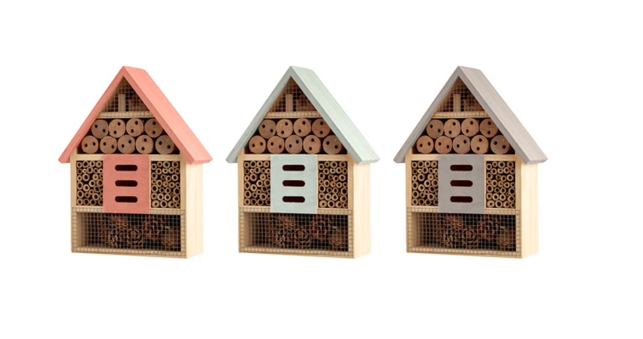 De forskellige materialer og hulmønstre giver let tilgængelige hjem til vigtige haveinsekter som mariehøns, sommerfugle, edderkopper og andre nyttige arter. Det er vigtigt, at disse er i haven, da flere af dem er vigtige bestøvere og skadedyrsbekæmpere.