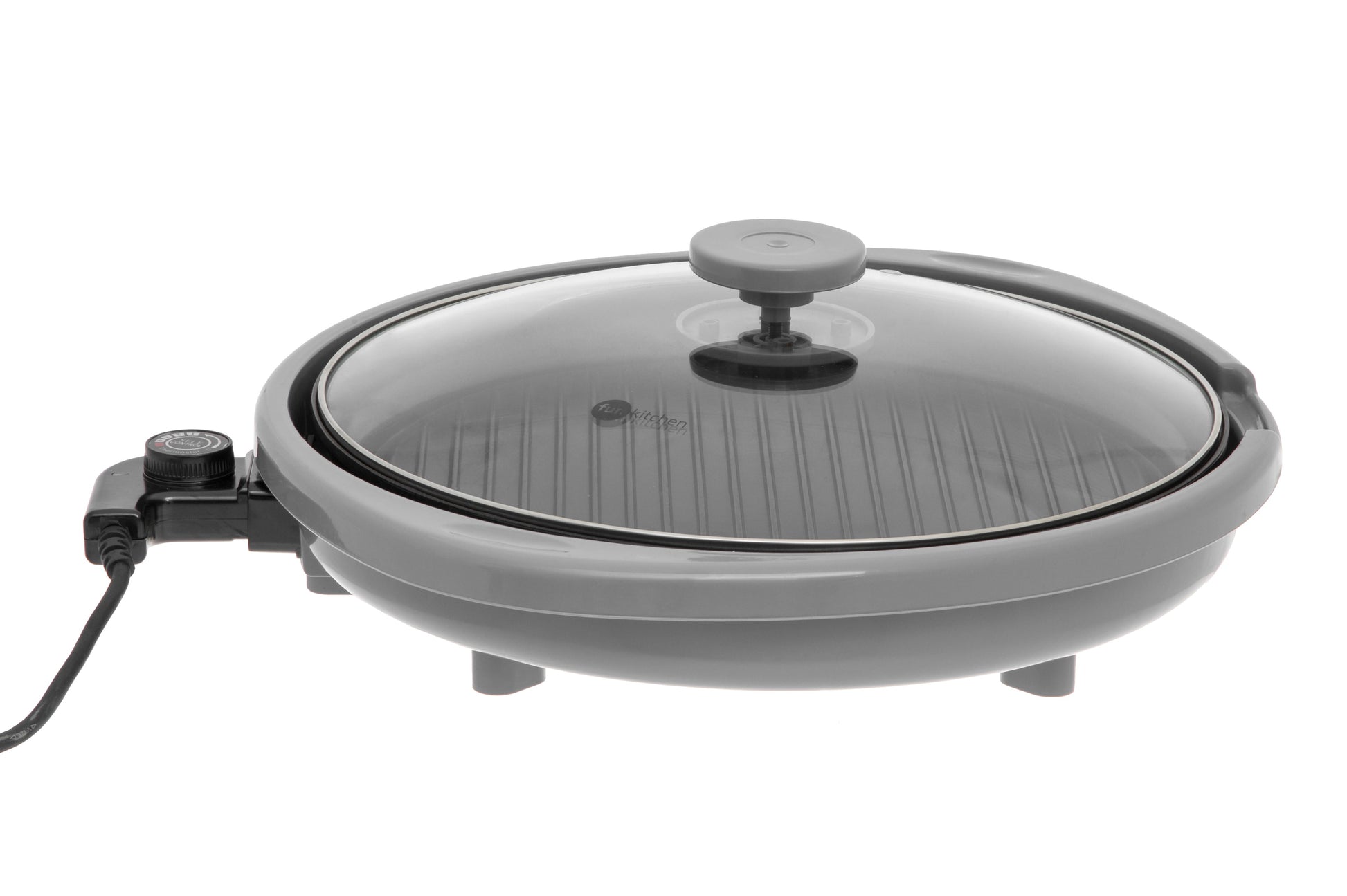 Praktisk elektrisk grill med non-stick bageplade. Aftagelig fedtbakke, aftagelig temperaturregulatordel. Indbygget tud.