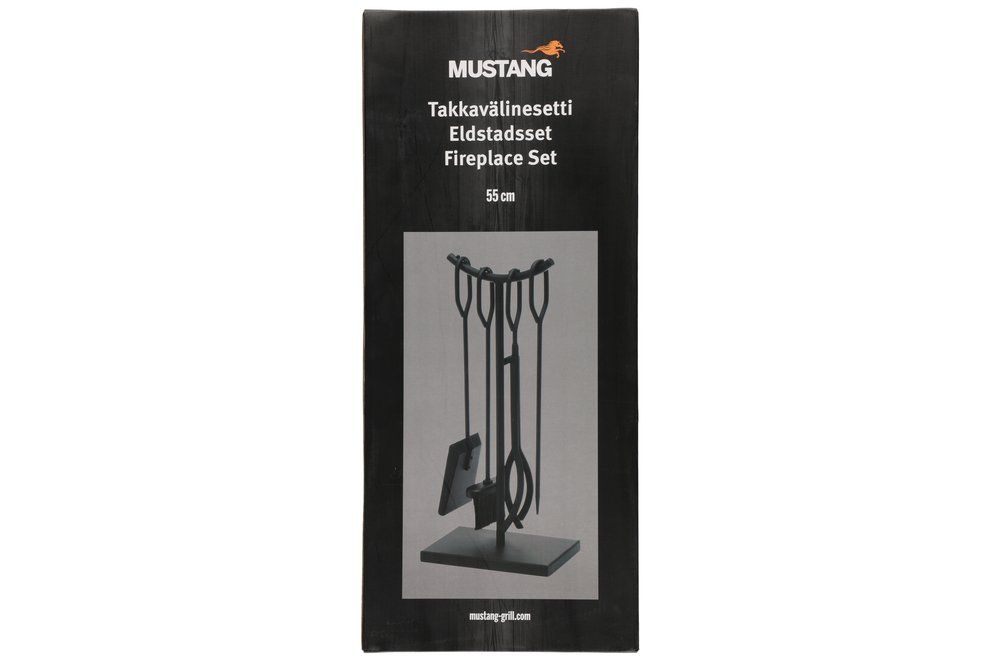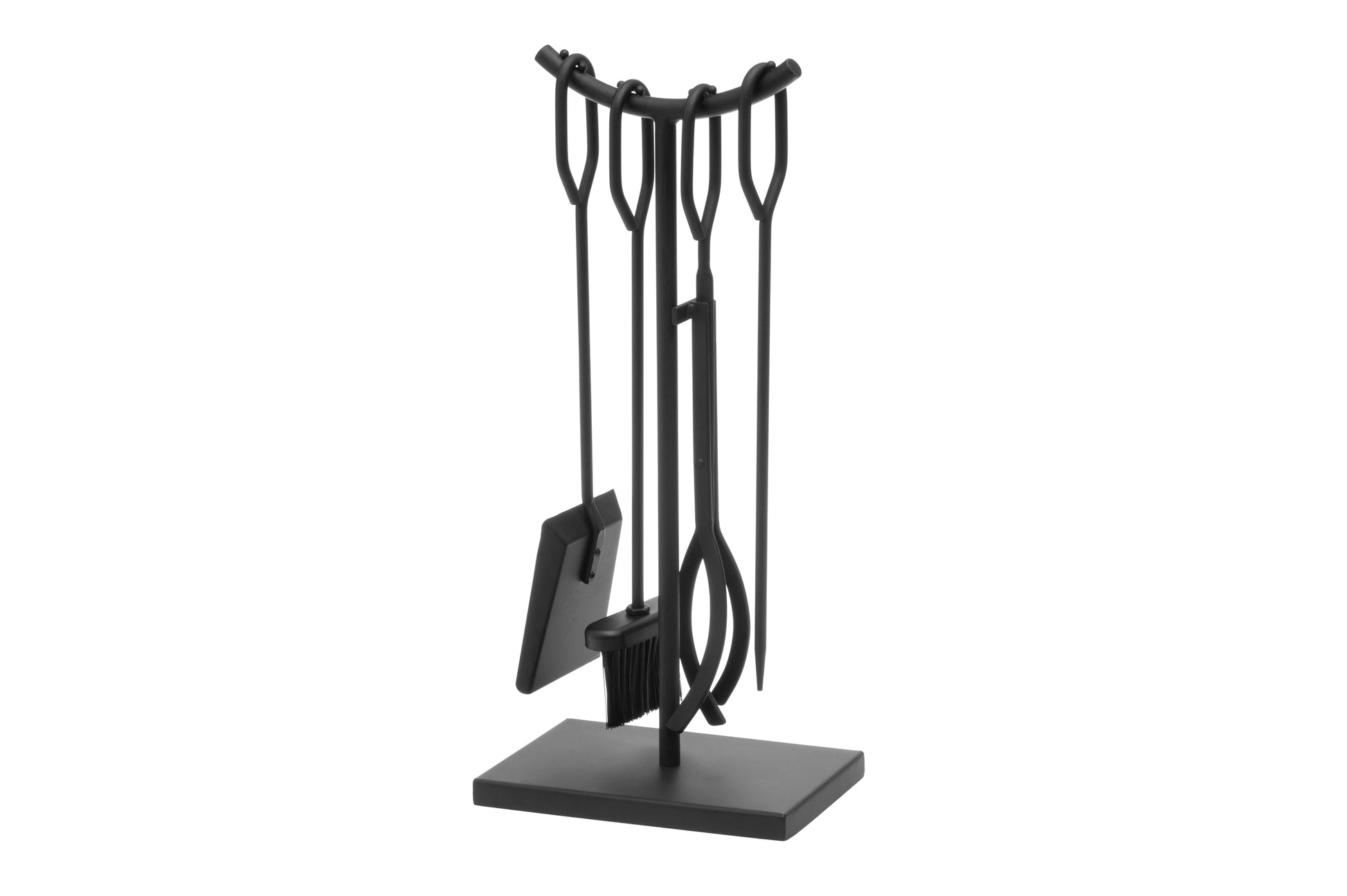 Stilfuldt og handy pejsesæt med stativ og fire værktøjer: børste, poker, skovl og tang. Højde 55 cm.