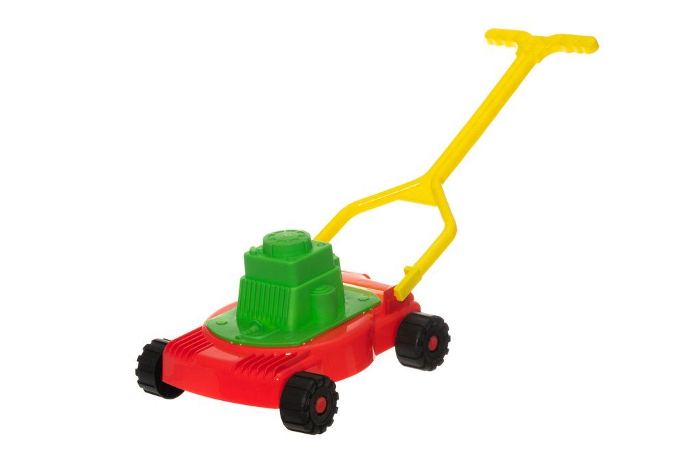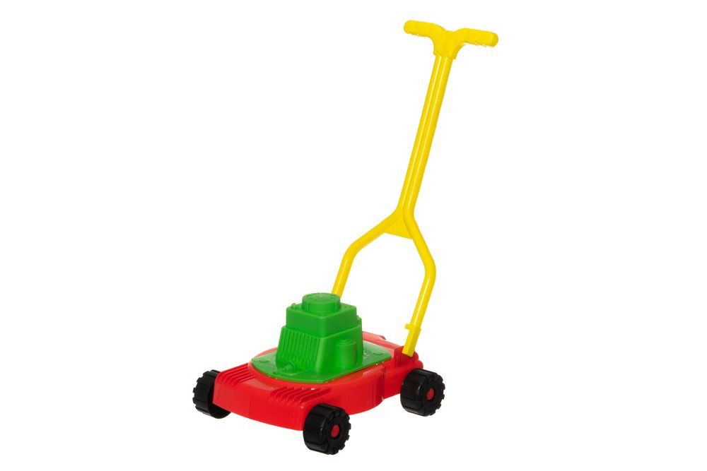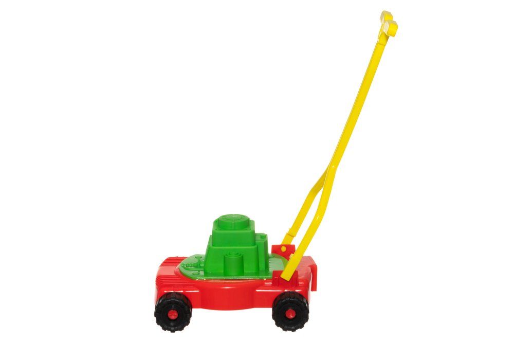 Plæneklipperen til de mindste har en mekanisk lyd, når den skubbes (ingen batterier påkrævet).