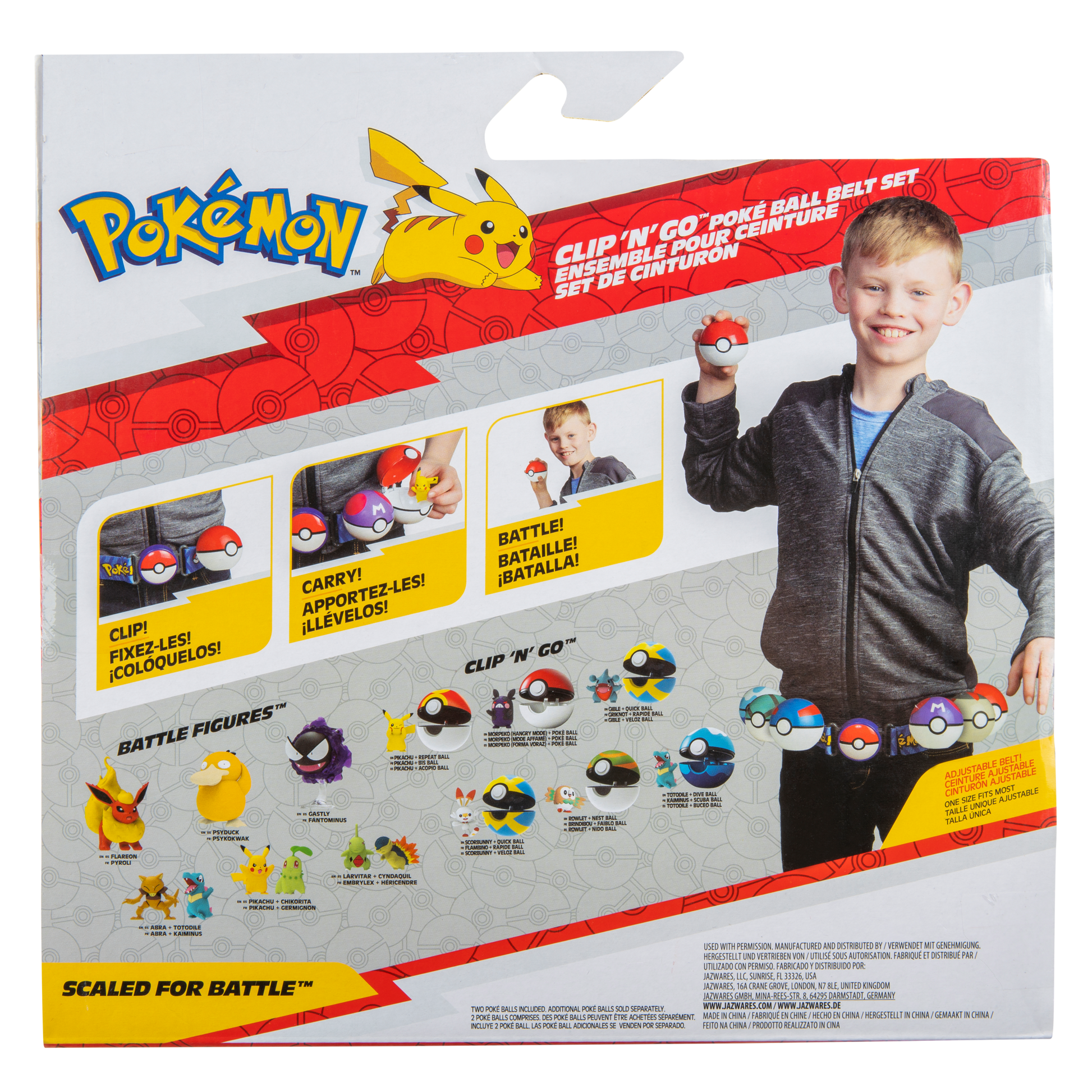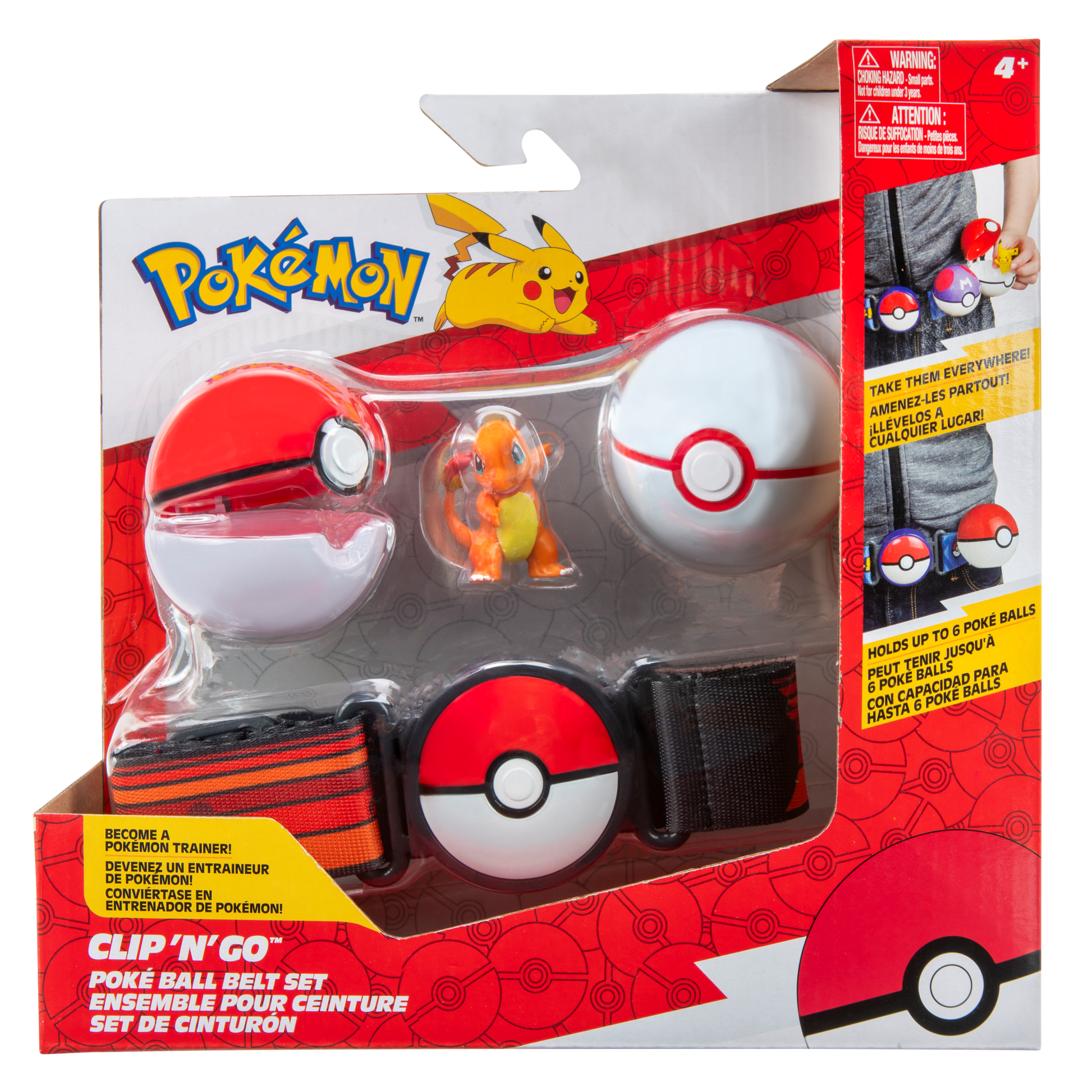 Sættet kommer med et justerbart bælte, 2 Pokéballs og en figur. Hvert bælte har plads til seks Pokéballs ad gangen.